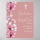 Poster Sinal de boas-vindas de batismo floral rosa poeire