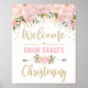 Poster Sinal de Boas-Vindas de Batizado Floral Rosa Corad