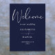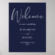 Este sinal de boas-vindas de casamento azul-marinho elegante pode ser personalizado com suas informações em tipografia sofisticada. Criado por Thisisnotme©