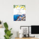 Este elegante sinal de boas-vindas de casamento apresenta limões em aquarela e uma cena de Santorini Grécia e pode ser personalizado com suas informações em tipografia moderna. Criado por Thisisnotme©