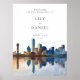 Este elegante sinal de boas-vindas de casamento com o horizonte de Dallas em aquarela pode ser personalizado com suas informações em tipografia moderna. Projetado por Thisisnotme©