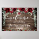 Um grande sinal de boas-vindas de casamento de 24 x 36 polegadas com seus nomes e data de casamento. Um conjunto de convite de casamento com aquarela floral de luxo. Peônias vermelhas suntuosas em cascata irrompem entre frondes de verde aquarela prateada e borrifos de arte floral delicada. Anuncie seu casamento com um convite moderno vintage elegante com uma fonte de caligrafia manuscrita.