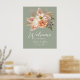 Receba seus convidados com elegância usando este sinal de casamento floral verde sálvia. Com rosas pintadas à mão em aquarela, peônias de pêssego, lírios cremosos e folhagens secas, este sinal de boas-vindas rústico boho adiciona um toque romântico suave à sua cerimônia ou entrada da recepção. Personalize com nomes e data para um início coeso da sua celebração.