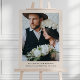 O símbolo de boas-vindas do casamento, elegante e minimalista, apresenta texto preto que inclui os nomes da noiva e do noivo com data de casamento em um fundo natural e exibe uma foto personalizada.
