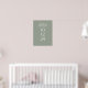 Um sinal de boas-vindas com a data especial e os nomes, em tipografia moderna sobre um fundo verde sage. Criado por Thisisnotme©