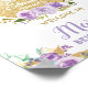 Sinal de Boas-Vindas / Cartaz de Decoração para Chá de Noiva com Tema Floral Roxo Doce e Caprichoso, apresentando um bule de chá com brilho dourado e lindas flores roxas e malvas em aquarela. Personalize-o com seus detalhes de forma fácil e rápida, basta pressionar o botão personalizar para reorganizar e formatar o estilo e a disposição do texto. Escolha entre tamanhos pequenos e extra grandes. Use cartazes de tamanho pequeno como sinais de boas-vindas, ótimos em molduras e colocados na mesa da festa. Use cartazes de tamanho grande como faixas de boas-vindas ou decoração de fundo de boas-vindas. Projetado para combinar com nossa coleção de Chá de Noiva Floral Roxo Doce. Itens correspondentes disponíveis na loja! (c) The Happy Cat Studio