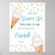 Modelo de sinal de boas-vindas de chá de panela de noiva com sorvete e confeitos servidos.