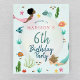 Este bonitinho e caprichoso sinal de boas-vindas ao aniversário de criança da sereia apresenta um fundo de design, com peixes, bolhas e algas. O sinal de boas-vindas pode ser personalizado com o nome e a idade das suas raparigas. A perfeita adição do oceano à festa de aniversário do seu filho! Este sinal está definido para um 6, mas é fácil de editar em 'personalizar este modelo' para uma idade diferente.