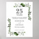 Com elegante verde-floral de aquarela, este design de aniversário de casamento botânico de 25 pode ser personalizado com sua informação especial de aniversário no texto moderno de prata. Projetado por Thisnotme©