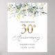 Sinal de Boas-vindas 30 Casamento Aniversário. Este design apresenta uma ilustração aquosa de folhagem verde e folhas de eucalipto. No topo da imagem - confete de efeito esverdeado.