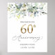 Sinal de Boas-vindas 60º Aniversário de Casamento. Este design apresenta uma ilustração aquosa de folhagem verde e folhas de eucalipto. No topo da imagem - confete de efeito esverdeado.