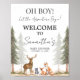 Elevem seu chá de fraldas de Aventura Aguarda este elegante sinal de boas-vindas — perfeito para receber convidados e eleger suas mesas. Fácil de personalizar e impressão, esta placa adiciona um toque na moda, coordenado, ao seu decor de celebração. BS64