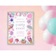 Celebre seu dia especial com nosso Sinal de Boas-vindas da Festa de aniversário de Celebração. Este design de aquarela é enfeitado com uma borda de doces e doces. Personalize o texto para torná-lo exclusivo seu e dê o tom para a festa mais doce de todos!