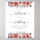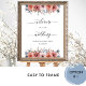 Bem-vindo aos seus convidados com estilo. Design requintado com caligrafia escrita à mão moderna e tipografia de blocos ao longo de belas bordas florais com flores e folhagem seca, em cor-de-rosa-pincel, marfim, azul empoeirado e tons de sábio. 8" x 10" é simplesmente um exemplo que você pode escolher de uma variedade de tamanhos diferentes. Parte da nossa Blissful coleção de casamentos e eventos.
