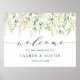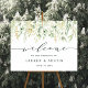 Este Sinal de Boas-vindas do Casamento com folhas pintadas de aquarela em vários tons de verde. Para personalização mais avançada deste design, clique no botão "Personalizar". Itens correspondentes também estão disponíveis.
