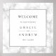 Trendy e moderno mármore branco com o sinal de boas-vindas do casamento. Para personalização mais avançada deste design, clique no link "Personalizar mais". Itens correspondentes também estão disponíveis.