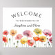 Sinal de boas-vindas do casamento de flores silvestres de papoila colorida