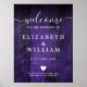 Este sinal de boas-vindas ao casamento de madeiras rústicas roxas pode ser personalizado com sua informação na tipografia moderna. Projetado por Thisnotme©