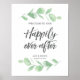 Bem-vindos convidados ao seu casamento com esta placa de casamento verde do eucalipto 'Bem-vindo à nossa Felicidade sempre depois' que você pode enquadrar ou colocar em uma banca. Personalize o texto do seu casamento. Também estão disponíveis convites e artigos de papel correspondentes. © Mini Moi impressões