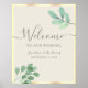 Bem-vindos aos seus convidados com este elegante cartaz de casamento rústico que apresenta cores aquáticas pintadas à mão em tons macios e eucaliptos. Uma falsa borda dourada enquadra a design minimalista, colocada contra um fundo bege de marfim com caligrafia romântica — perfeita para casamentos ao ar livre e temas botânicos.
