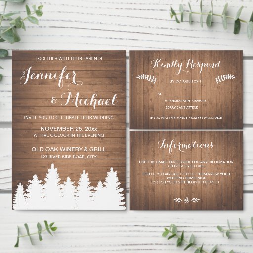 Textura de madeira russa e sinalização de casamento da silhueta da floresta. Excelente para casamento rústico, casamento de montanha, casamento de celeiro, ... Mais placas de casamento em nosso compro: http://www.zazzle.co.uk/designbyredline