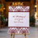 Sinal de boas-vindas do Casamento tema damasco branco Elegante Burgundy