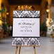 Sinal de boas-vindas do Casamento tema damasco branco preto elegante