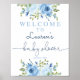 Poster sinal de boas-vindas do chá de fraldas, azul flora