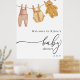 Bem-vindos convidados ao seu chá com este belo sinal, apresentando uma ilustração adorável de roupas clássicas de bebês penduradas numa linha de roupas. Adicione o nome do convidado de honra, a data de chá e o texto de boas-vindas personalizado usando os campos fornecidos.