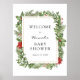 Bem-vindos convidados ao seu chá de fraldas com este belo poster, com um quadro de ouro cercado por folhas verdes-inverno e holly de inverno. Adicione o nome do convidado de honra, a data de chá e o texto de boas-vindas personalizado usando os campos fornecidos.