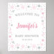 Este lindo sinal de boas-vindas chá de fraldas apresenta um design de floco de neve rosa e prateado cor-de-rosa-inverno. Personalize-o com seus próprios detalhes.