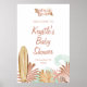 Bebê em Conselho, sinal de boas-vindas ao chá de fraldas, é um sinal de chá de fraldas neutro em relação ao gênero, com um tema inspirado no surf. O convite correspondente está disponível. Com uma prancha de madeira e palmeiras, esta design é perfeita para o seu bebê no tema do conselho.