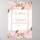 Bonito brilho cor-de-rosa e rosa-ouro e design de sinal de boas-vindas de peônia para um chá de fraldas feminino. Personalize com o nome e a data da mãe ou do pai. Por favor, veja o meu compro para mais itens correspondentes para o seu partido!