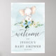 Poster Sinal de boas-vindas do Chá de fraldas Elefante Az