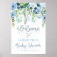 Poster Sinal de boas-vindas do Chá de fraldas floral azul