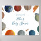 Convite para chás de fraldas do sistema solar e do espaço com uma borda de planetas pintados manualmente por Shelby Allison em fundo branco.