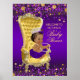 O sinal de boas-vindas da princesa chá de fraldas da Princesa Africana, com uma linda menina americana vestindo um tutu roxo e pérolas roxas e uma cadeira de ouro em um elegante roxo e fundo de ouro. Este sinal de boas-vindas a chás de fraldas é facilmente personalizado para o seu evento simplesmente adicionando o seu texto.