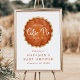 Bem-vindos amigos e família ao seu chá de fraldas de outono com este cartaz de boas-vindas, poster, com um guião branco, que diz "A Little Cutie Pie is On The Way!", ao lado de uma encantadora ilustração de torta de abóbora. Perfeito para um chá de fraldas com temática de abóbora neutra do ponto de vista do gênero, este design inspirado no outono apresenta tons quentes de terracota e tons castanhos ouros para um encanto confortável e sazonal. Disponível como um poster impresso, um download digital, ou ambos, este versátil sinal de chá de fraldas facilita o crio de uma bela exibição de entrada que define o tom para sua celebração.