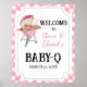 Poster Sinal de boas-vindas do Chá de fraldas rosa editáv
