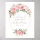 Bem-vindos convidados ao seu chá de fraldas com este lindo sinal de boas-vindas florais rosa e dourado.