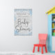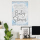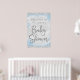 O chá de fraldas da Maravilha de inverno é bem-vindo com bonito letras prateadas em um fundo azul prateado floco de neve. Este cartaz de boas-vindas do chá de fraldas floco de neve do inverno é facilmente personalizado para o seu evento simplesmente adicionando seus detalhes.