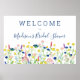 Sinal de boas-vindas do chá de noiva do Jardim de Flores Silvestres com lindas flores silvestres em aquarela multicoloridas e texto azul-marinho (que pode ser removido ou alterado). Por favor, veja a coleção para itens coordenados e sinta-se à vontade para entrar em contato comigo para solicitar item(ns) não mostrado(s).