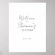 Bem-vindos convidados ao seu chá de panela com este moderno sinal de boas-vindas preto e branco. Com um design elegante e limpo, este sinal adiciona um toque polido e convidativo ao seu evento. Personalize-o com o nome da noiva, a data do chá ou uma mensagem especial para um olhar coeso e elegante. Perfeito para entradas, fundos de fotos ou mesas de exibição, este sinal complementa temas modernos e de chás.