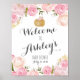 Poster Sinal de boas-vindas do Chá de panela de flores ro