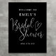 Este sinal de boas-vindas ao chá de panela de script elegante preto e branco pode ser personalizado com seu nome e data especial. Projetado por Thisnotme©