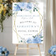 Um sinal de boas-vindas ao Chá de panela Dourado Azul. Sinal de boas-vindas do chá de panela floral azul empoeirado. Linda mão pintou flores aquarelas em tons de azul bebê e azul empoeirado perfeito para primavera, verão e chás de panela de outono. Itens correspondentes disponíveis.
