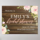 Sinal de boas-vindas do chá de panela personalizado com flores cor-de-água rosa e um fundo de textura falsa de madeira