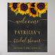 O na moda elegante de boas-vindas é poster modelo de carvões de carvão de cinza, apresentando um belo buquê de girassóis e um moderno roteiro de caligrafia. Fácil de personalizar com seus detalhes. Você pode personalizá-lo mudando ainda mais as fontes e as cores das letras.+++++++ É adequado para festas elegantes de chás de casamento de quintal de jardim do país rusticado de outono ou outono.