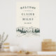 Bem-vindos convidados para o seu casamento rústico, florestal ou de montanha com a nossa poster do Sketch de Montanha, apresentando uma ilustração esboçada de picos de montanha, pinheiros, e um rio que flui. Adicione seus nomes, data de casamento e texto de boas-vindas personalizado usando os campos fornecidos.