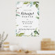 Este sinal de boas-vindas do janto de caligrafia verde é perfeito para um ensaio de casamento simples. A design apresenta folhas tropicais predominantemente verdes com um toque de flores rosadas.